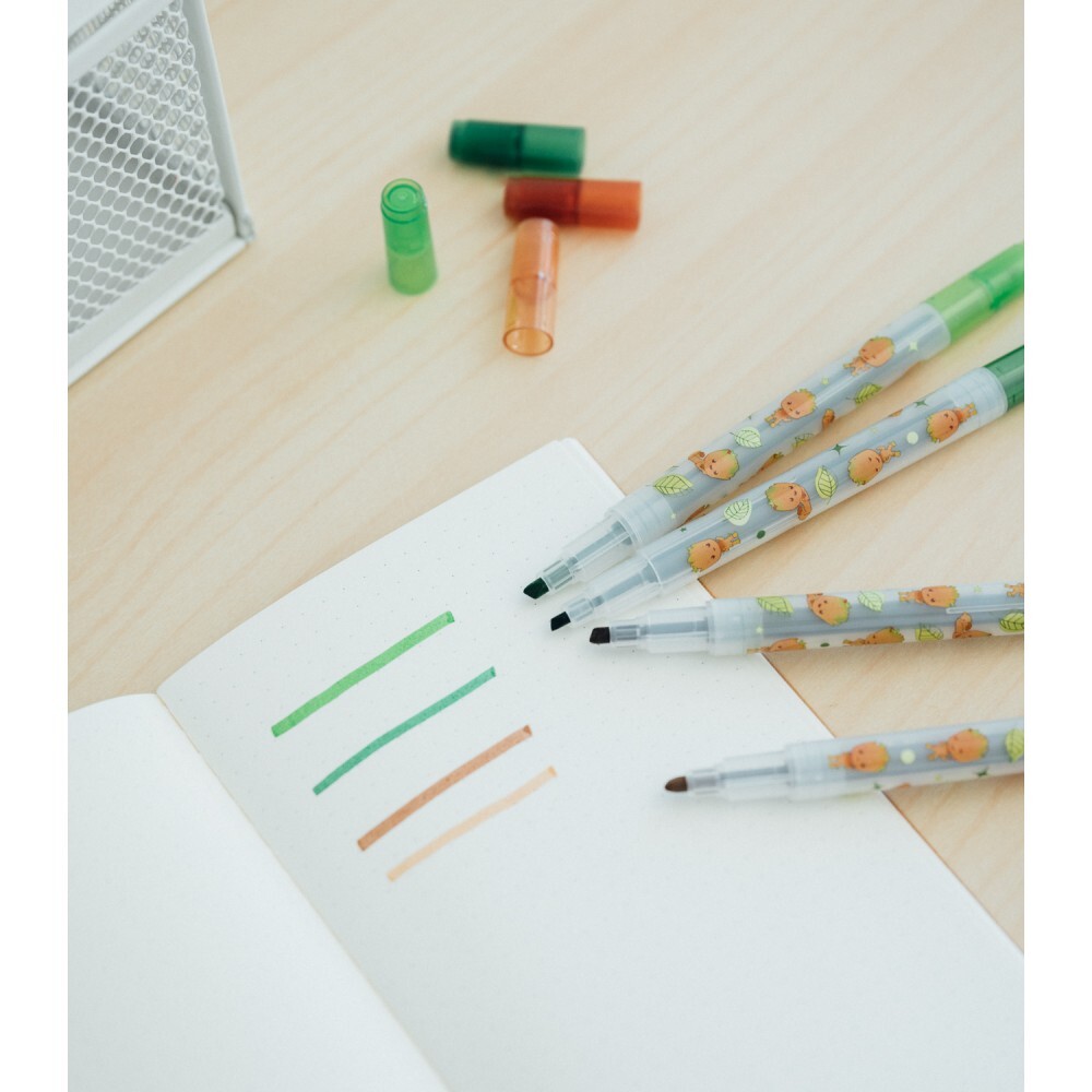 Contiene 4 resaltadores con dos puntas de diferentes tamaños. Incluye estuche de PVC.