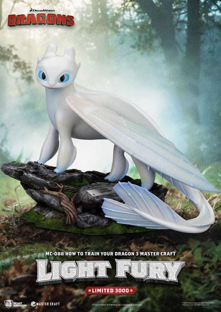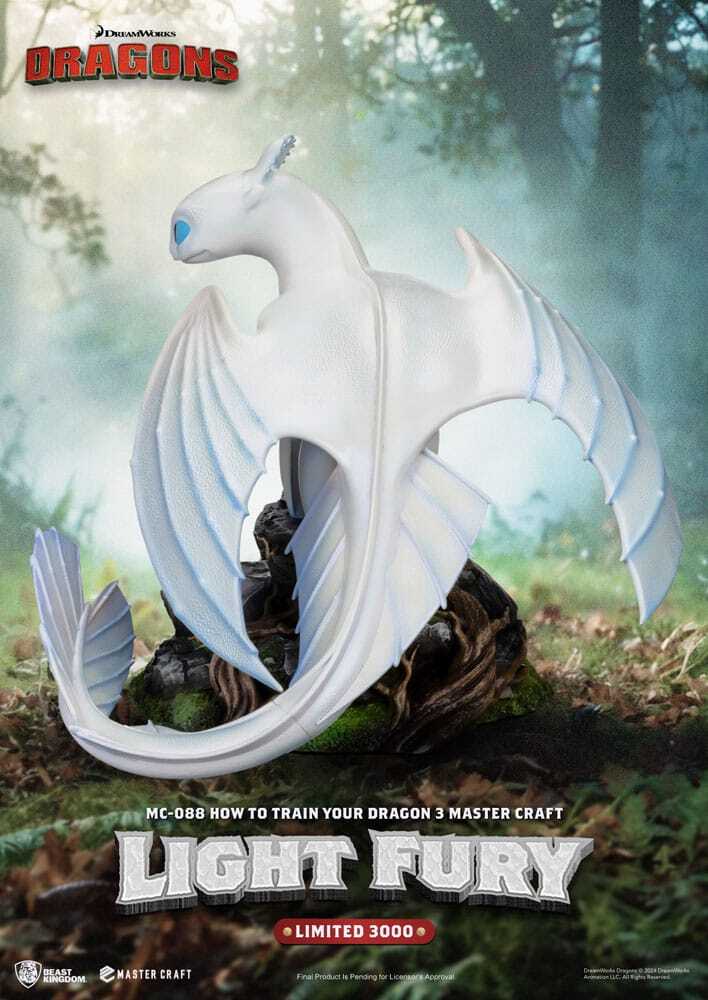 Incorpora a tu colección a la encantadora Furia Luminosa de Cómo Entrenar a tu Dragón 3 con esta estatuilla de resina Master Craft de aprox. 29 cm. Capturando su elegante diseño, forma estilizada y misterioso encanto, esta pieza encarna a la perfección el mágico vínculo del mundo de los dragones.