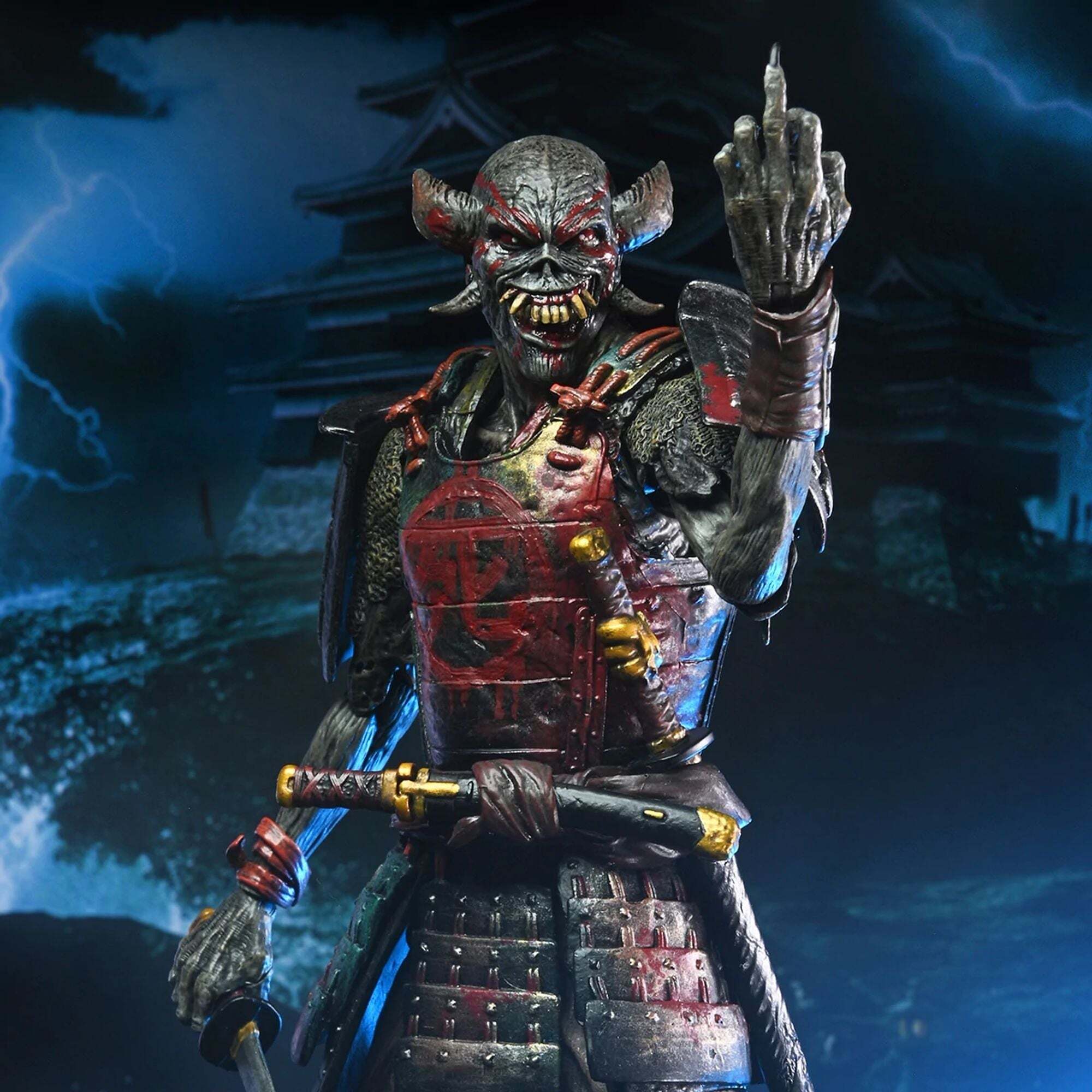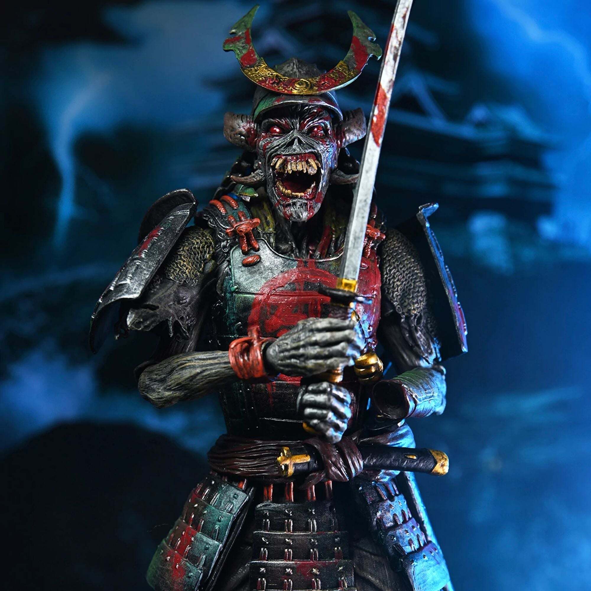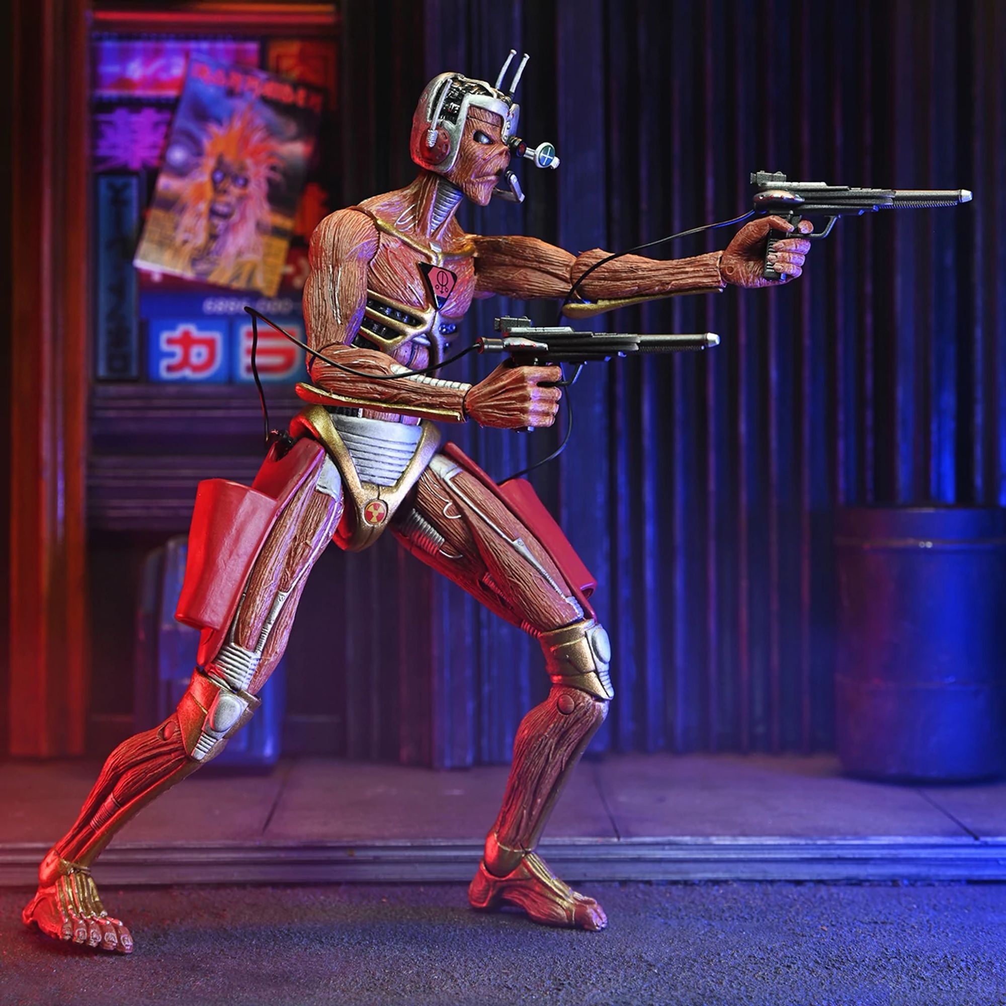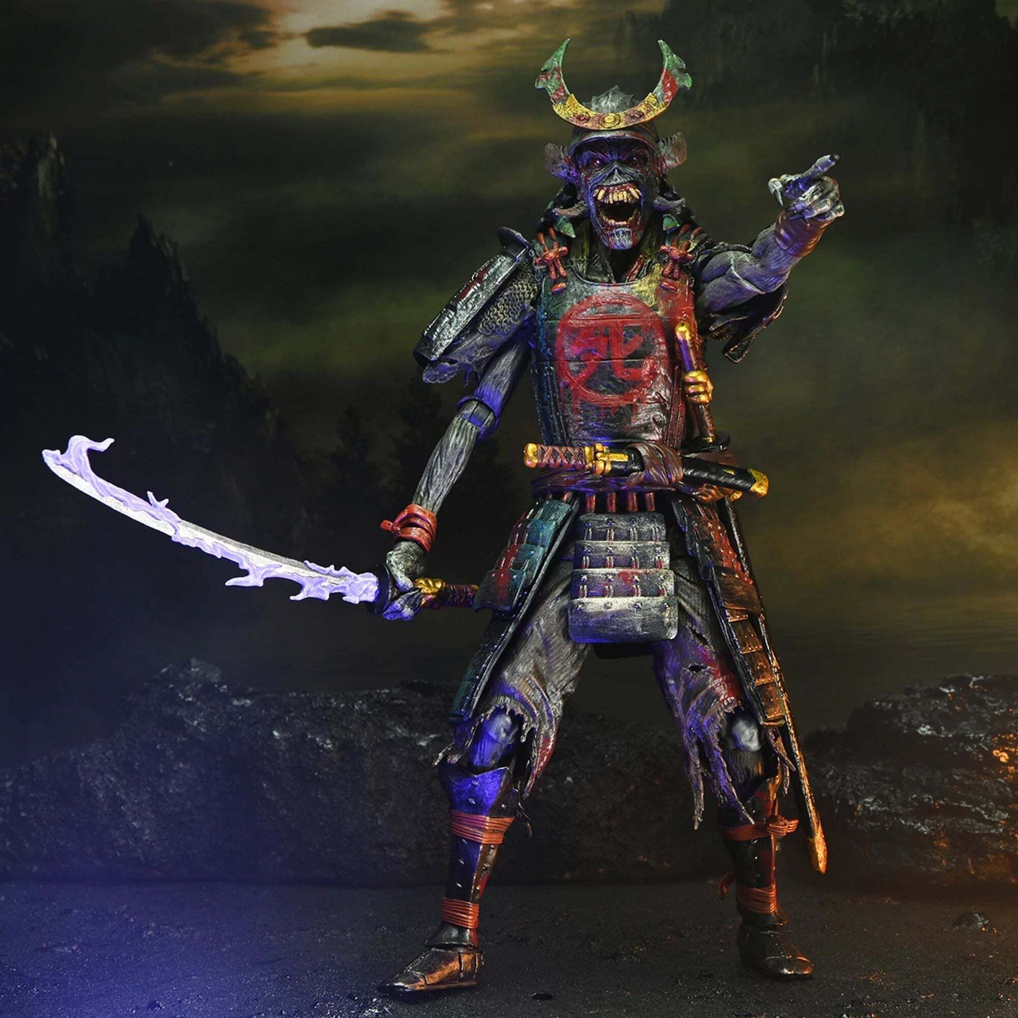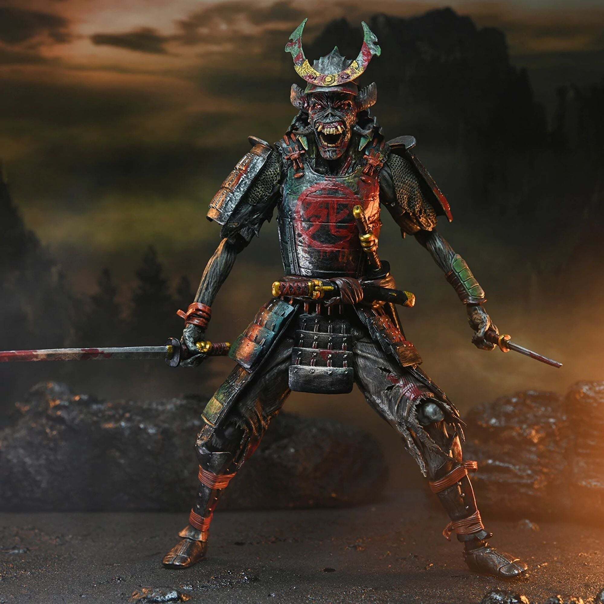 ¡Atención, metaleros! ¡Celebra la gira Future Past de Iron Maiden con su icónica mascota del heavy metal, Eddie, en un pack doble! Desde 1980, Eddie ha aparecido en las legendarias portadas de los álbumes de la banda. ¡Este pack de figuras NECA Ultimate le rinde homenaje en dos formas! Samurai Eddie, de la portada del álbum SENJUTSU de 2021, lo representa con una armadura samurái. Cyborg Eddie, por su parte, está basado en la portada futurista del clásico álbum de 1986, SOMEWHERE IN TIME. Altura: 18cm