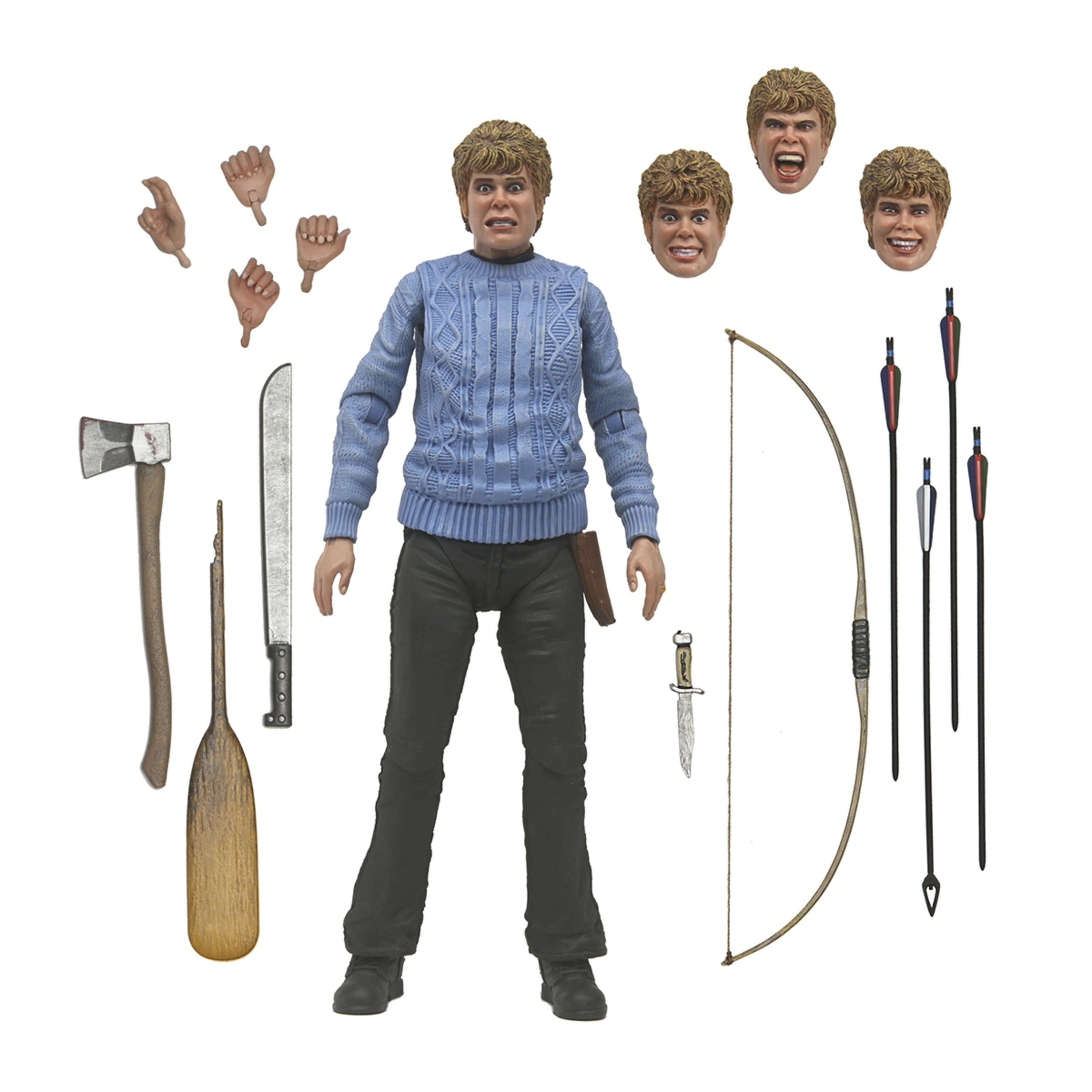 ¡Mamá ha vuelto! NECA se complace en presentar una figura favorita de los fans en una edición limitada única: ¡Pamela Voorhees Ultimate! La madre de Jason, y la asesina de la película original de Viernes 13 de 1980, regresa para vengar el trágico ahogamiento de su hijo en el Campamento Crystal Lake. Imprescindible para los fans del terror, esta figura articulada de 18 cm incluye cabezas y manos intercambiables, un cuchillo, un hacha, un machete, un remo roto, un arco y flechas. Viene en una caja con ventana y solapa de fácil apertura.