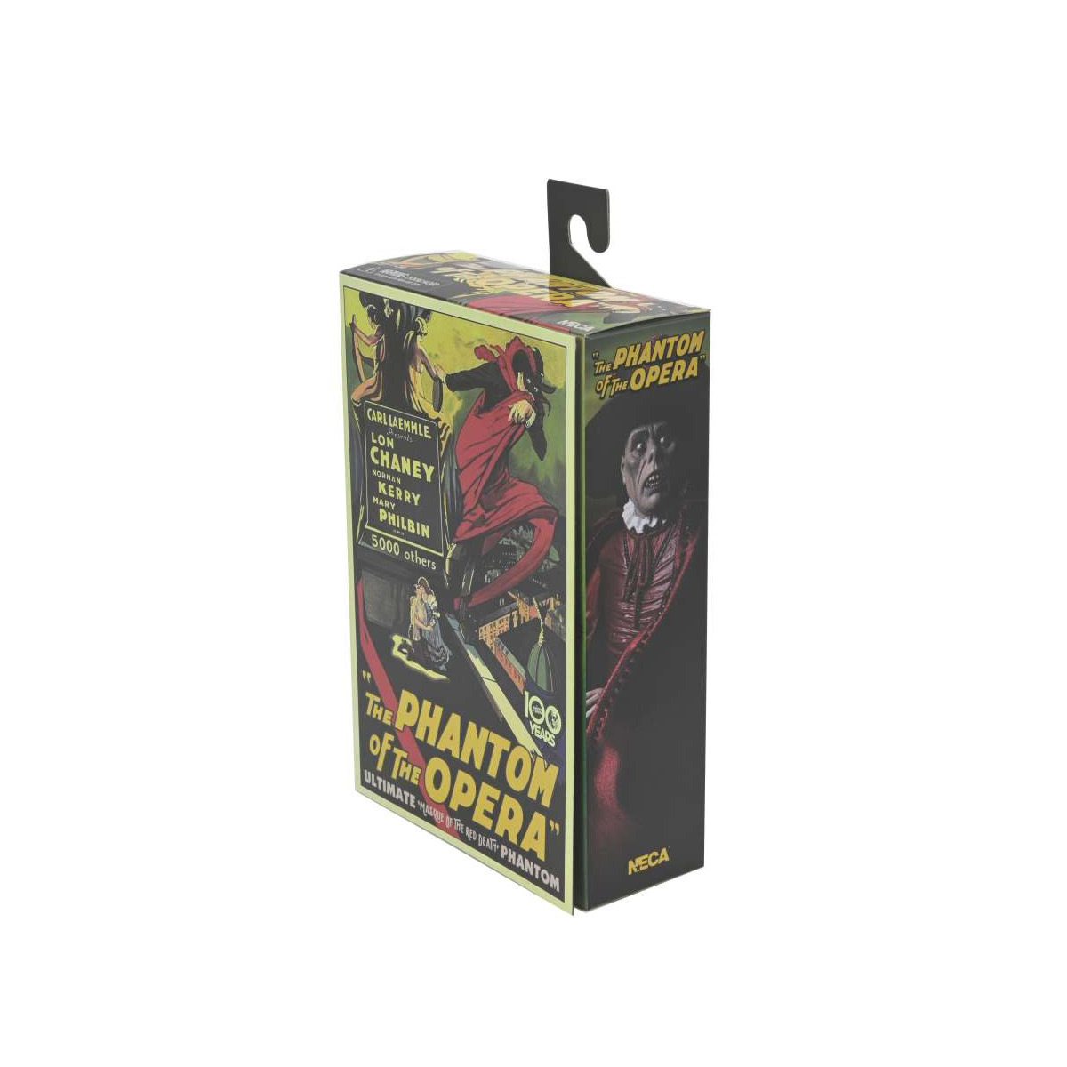 ¡Celebra un siglo de cine de terror! Para conmemorar el centenario de la película muda de 1925, El Fantasma de la Ópera, NECA rinde homenaje a este clásico con una espectacular figura a escala de 18 cm. Representa al Fantasma (Erik) con su famoso disfraz de "Muerte Roja" en el baile de máscaras, interpretado con macabra elegancia por Lon Chaney. Tras su máscara con forma de calavera, espía a Christine y Raoul desde la azotea de la Ópera de París. Esta pieza coleccionable incluye: – Una capa de tela – Un sombrero de ala ancha – Un bastón adornado con una calavera – Múltiples cabezas y manos intercambiables, compatible con otras figuras NECA de El Fantasma de la Ópera (se venden por separado). Presentada en una caja de coleccionista, esta figura es imprescindible para los fans del cine de terror y el cine clásico. Altura: 7 pulgadas