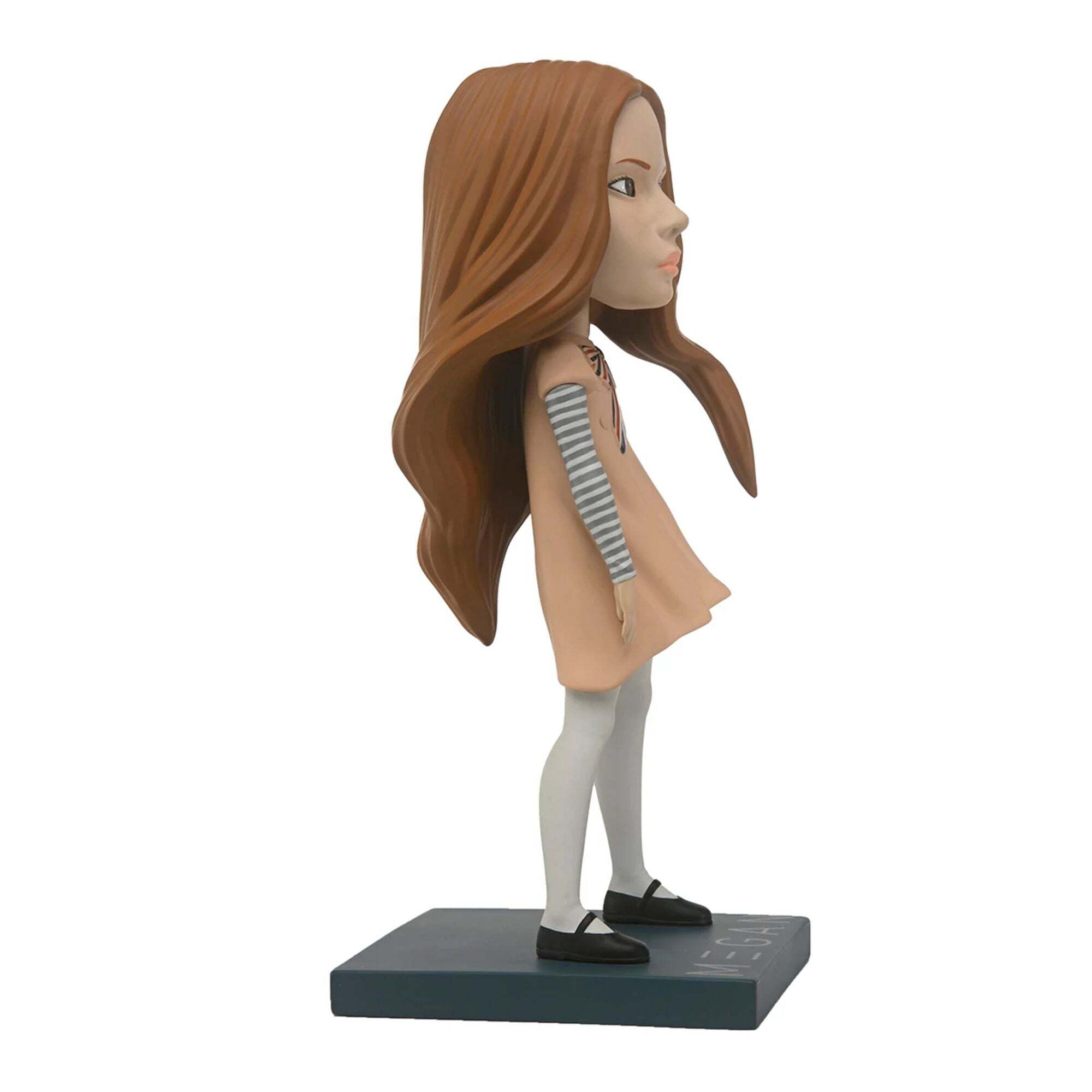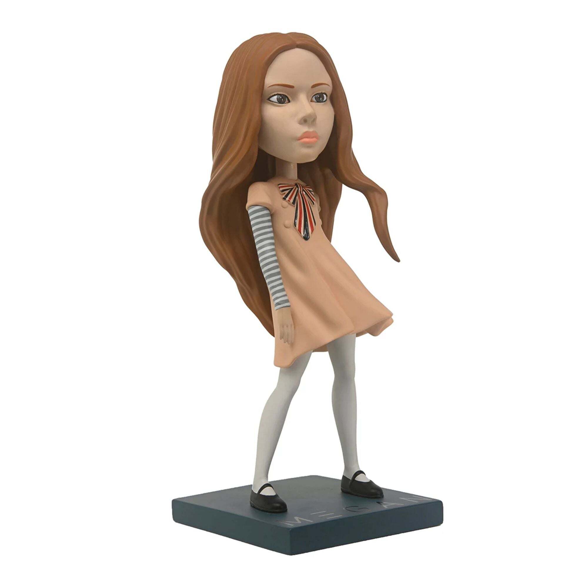 ¡La amistad ha cambiado... para peor! De la exitosa película de terror M3GAN, esta figura de Head Knocker presenta a la muñeca asesina sobre una base decorativa a juego, con la cabeza balanceándose suavemente. Con una altura aproximada de 19 cm, la figura está fundida en resina y pintada a mano con impresionante detalle. ¡Imprescindible para todos los fans de la película! Presentada en un empaque coleccionable con acabado mate y barniz localizado. Altura: 17,5 cm