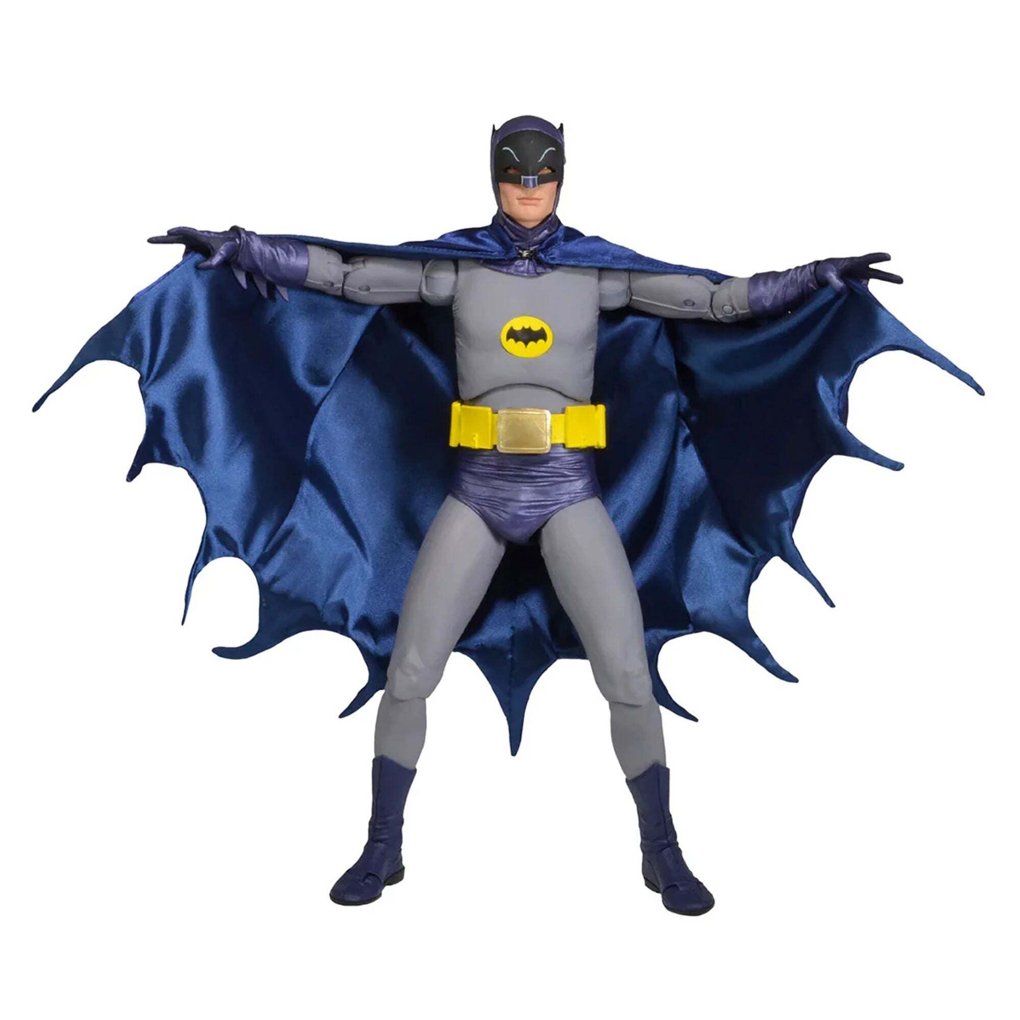 Durante casi 50 años, la serie de televisión Batman ha cautivado a generaciones de espectadores, y para muchos, Adam West sigue siendo el rostro icónico del Caballero Oscuro. Crecimos con esta versión icónica de Batman, y es un honor ofrecer esta figura articulada de 45 cm, fiel a la apariencia de Adam West. Incluye un cinturón multifunción real, manos intercambiables y muchos accesorios adicionales. Altura: 18 pulgadas