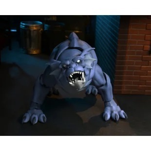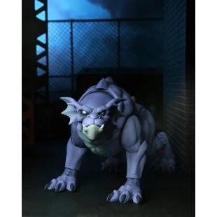 Hace mil años, reinaban la superstición y la espada... ¡La era de las Gárgolas ha vuelto! Un auténtico clásico de culto de los 90, Gárgolas cuenta la historia de un antiguo clan de gárgolas transportadas al Manhattan actual tras el traslado de su castillo escocés. El fiel compañero de cuatro patas de Goliat, Bronx, puede que no tenga alas, pero sigue siendo un miembro de pleno derecho del clan y un luchador formidable. Esta figura Ultimate totalmente articulada mide aproximadamente 13 cm de altura e incluye varios accesorios: dos cabezas intercambiables, un trozo de carne y un par de alas plegadas compatibles con la figura de Goliat (se venden por separado). Se presenta en una caja de exhibición de coleccionista con solapa ilustrada. Altura: 18 cm