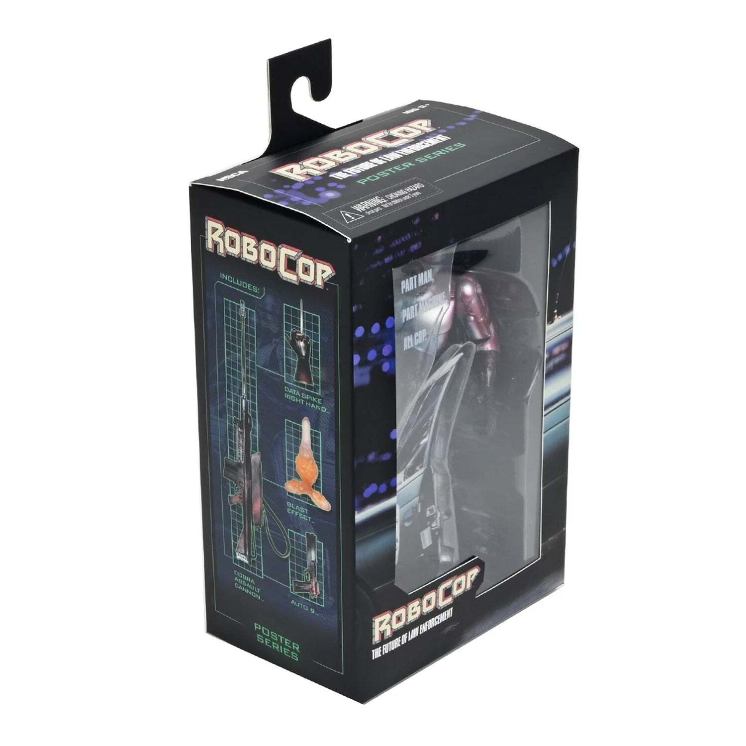 ¡50% Hombre, 50% Máquina, 100% Policía! NECA se enorgullece de presentar la primera de una nueva línea de figuras de la Serie Póster: una nueva figura de RoboCop basada en la clásica película de culto. Esta figura articulada de 18 cm rinde homenaje al icónico póster de RoboCop de 1987, con una decoración especial que recrea la obra de arte característica del póster. Altura: 18cm