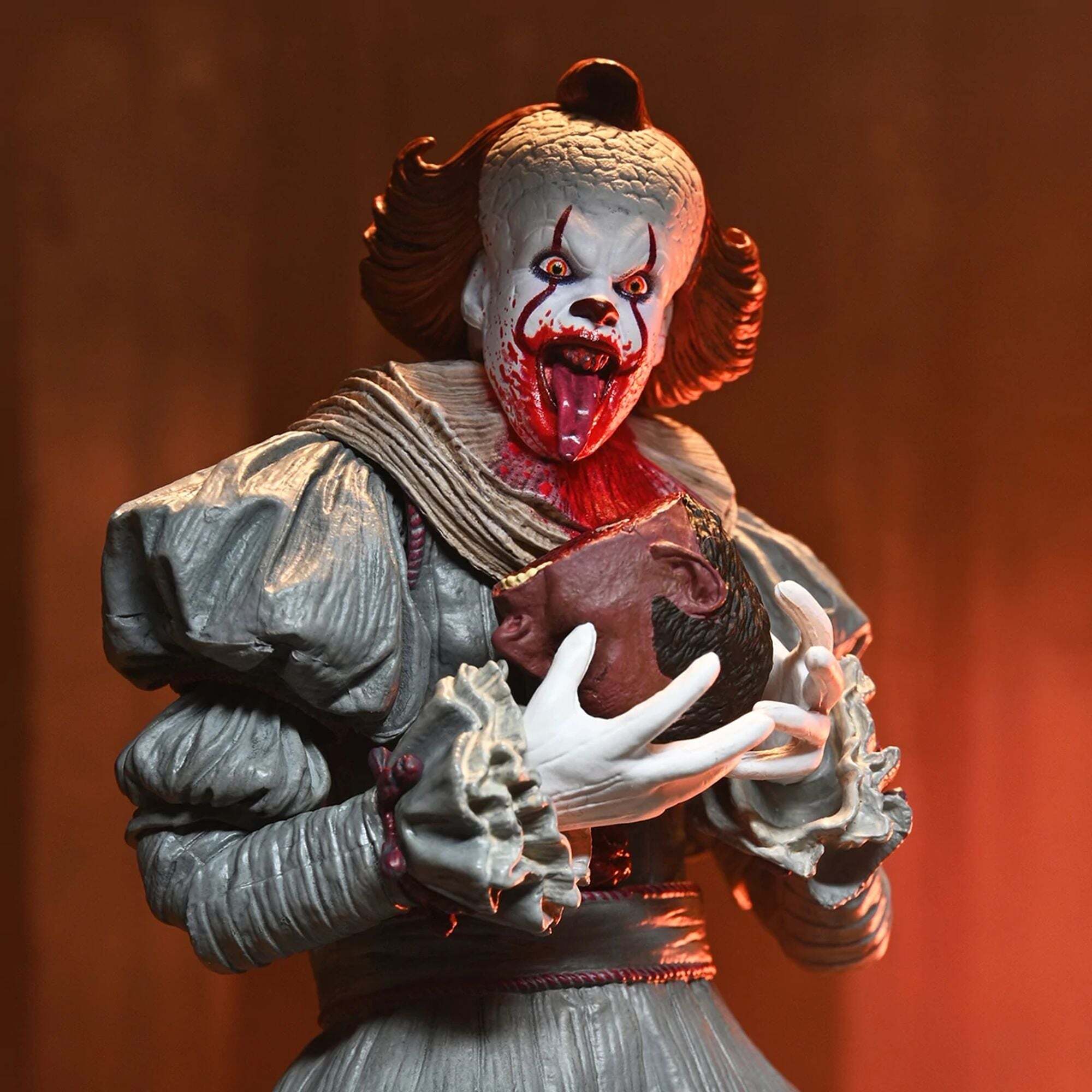 Esta versión Ultimate captura todos los detalles del disfraz, el maquillaje terrorífico y la expresión maléfica del célebre payaso. Entièrement articulée, elle est parfaite pour les collectionneurs et les fans, et s'expose fièrement grâce à son design fidèle à l'original.