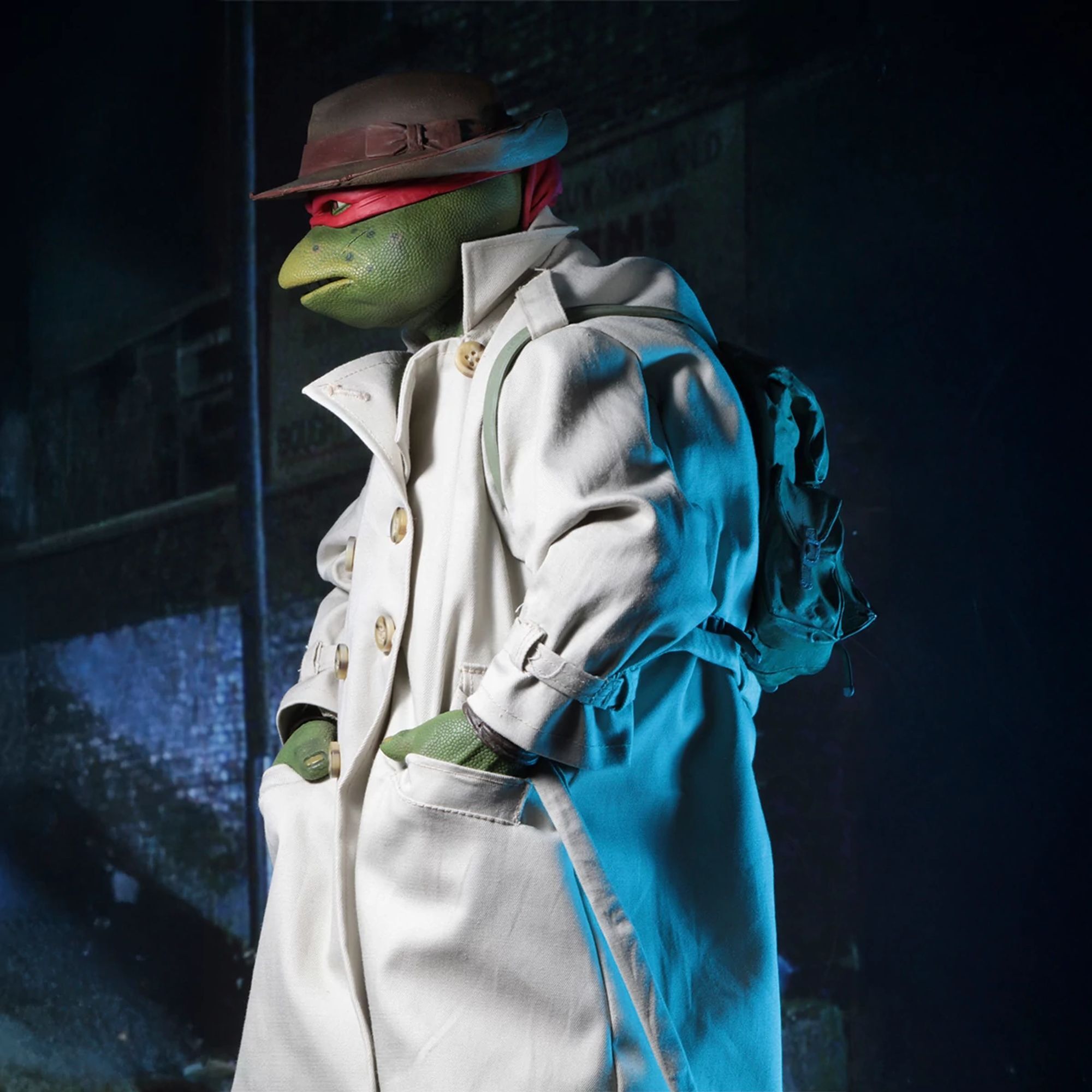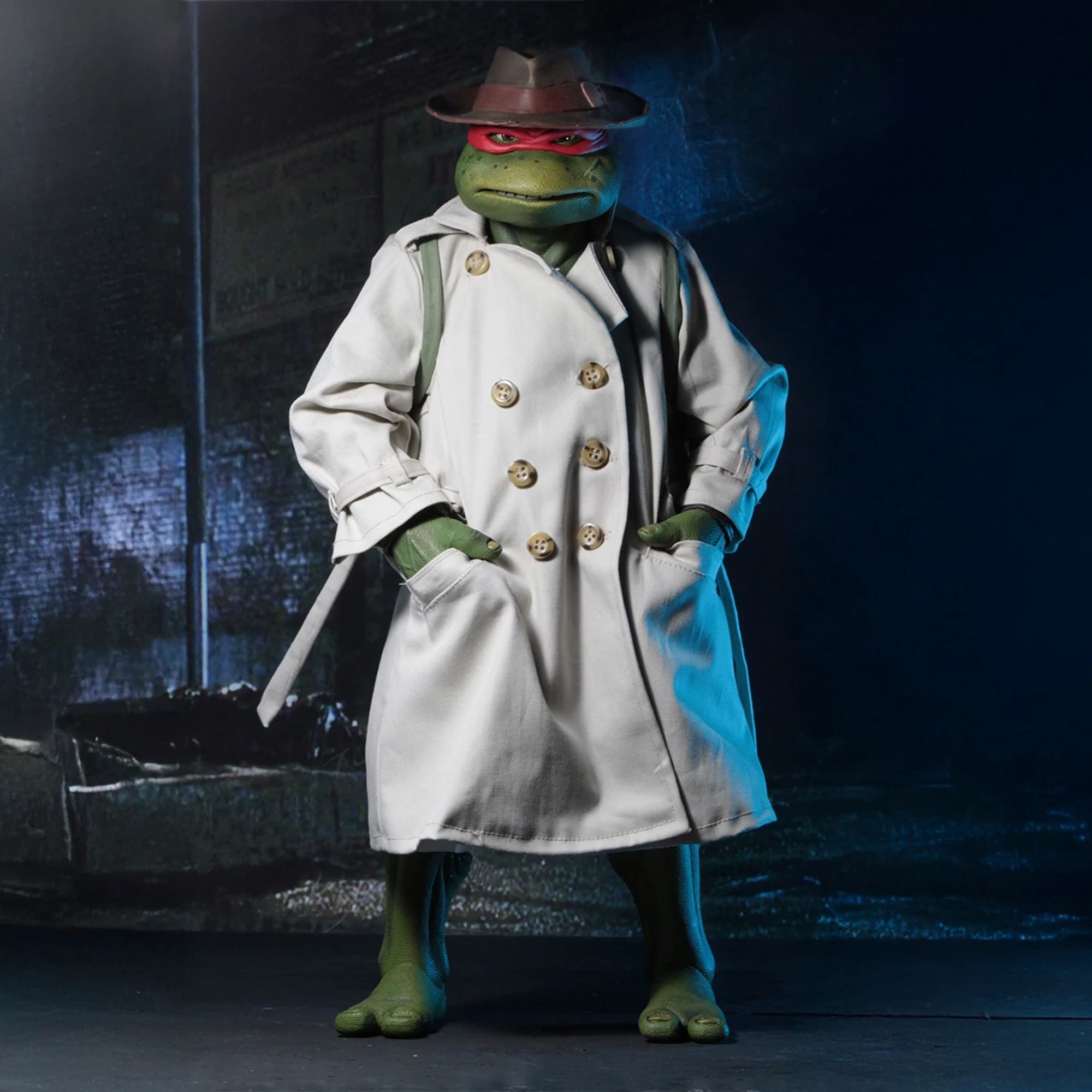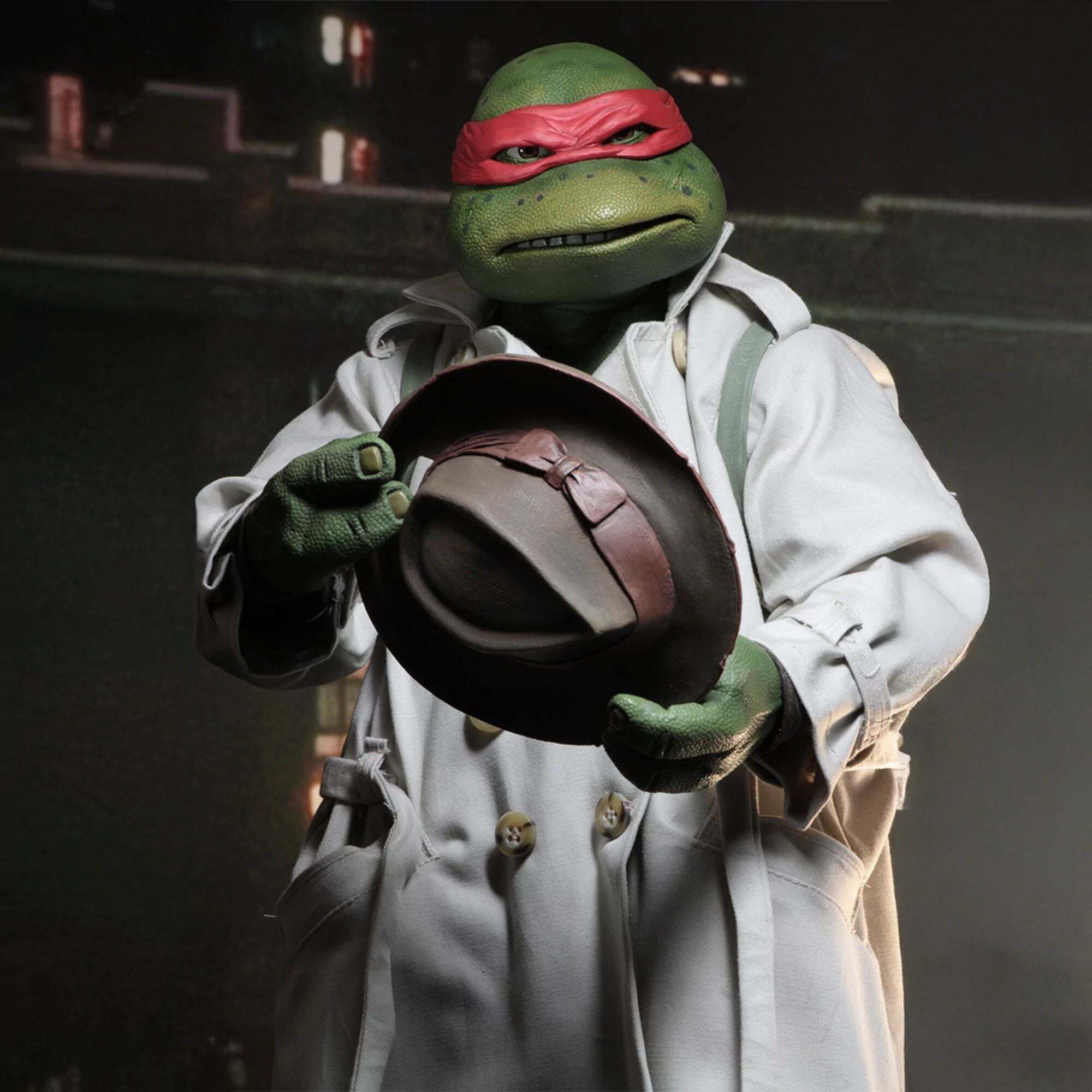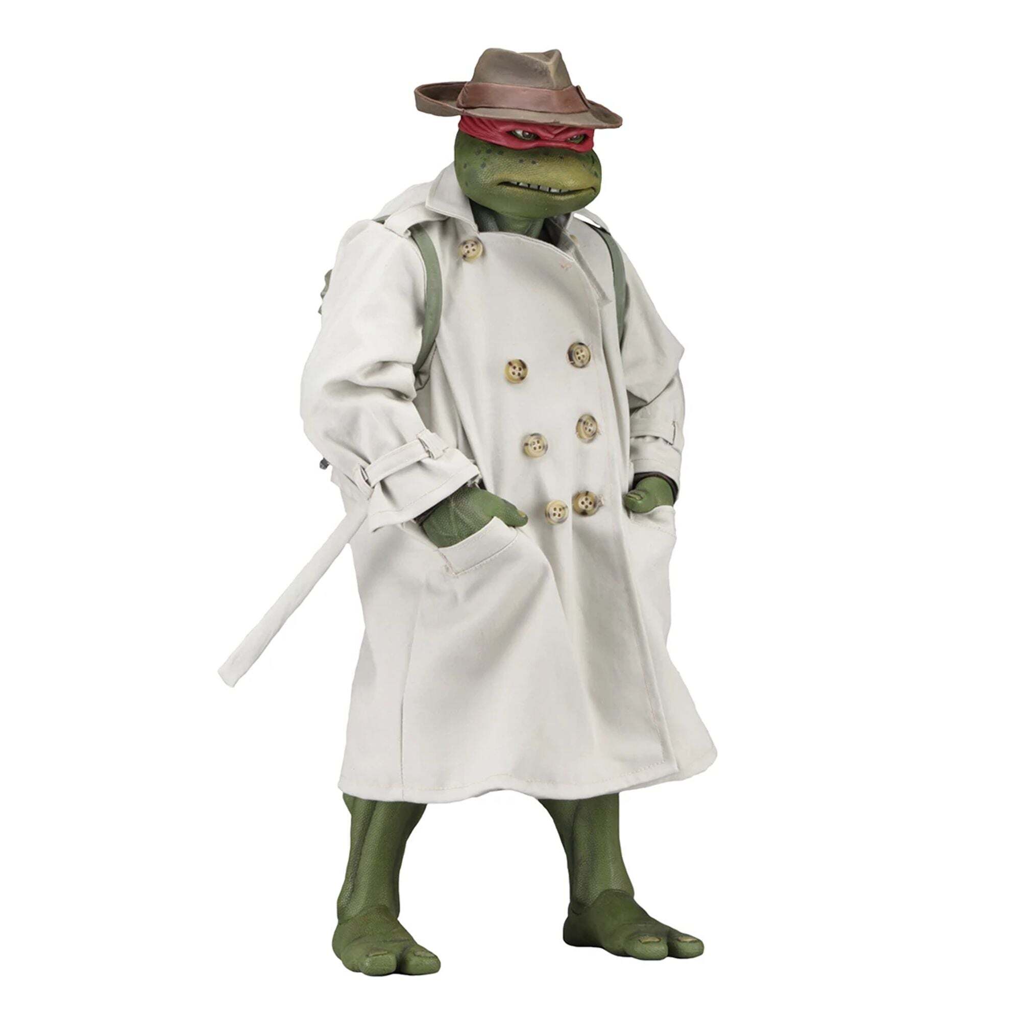 ¡ De la película de las Tortugas Ninja de 1990! Tras atravesar un charco de residuos radiactivos, estas tortugas se transformaron en el mayor cuarteto anticrimen de Nueva York. Esta figura de acción de NECA a escala 1 representa a Raphael con su disfraz, el que usa para moverse por la ciudad sin ser detectado. Altura: 45cm