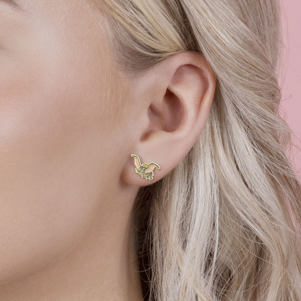 Estos pendientes oficiales de Disney Dumbo bañados en oro son el regalo perfecto para cualquier fan de Disney . Estos coloridos pendientes bañados en oro con la forma de Dumbo vienen en un empaque oficial de Disney .
