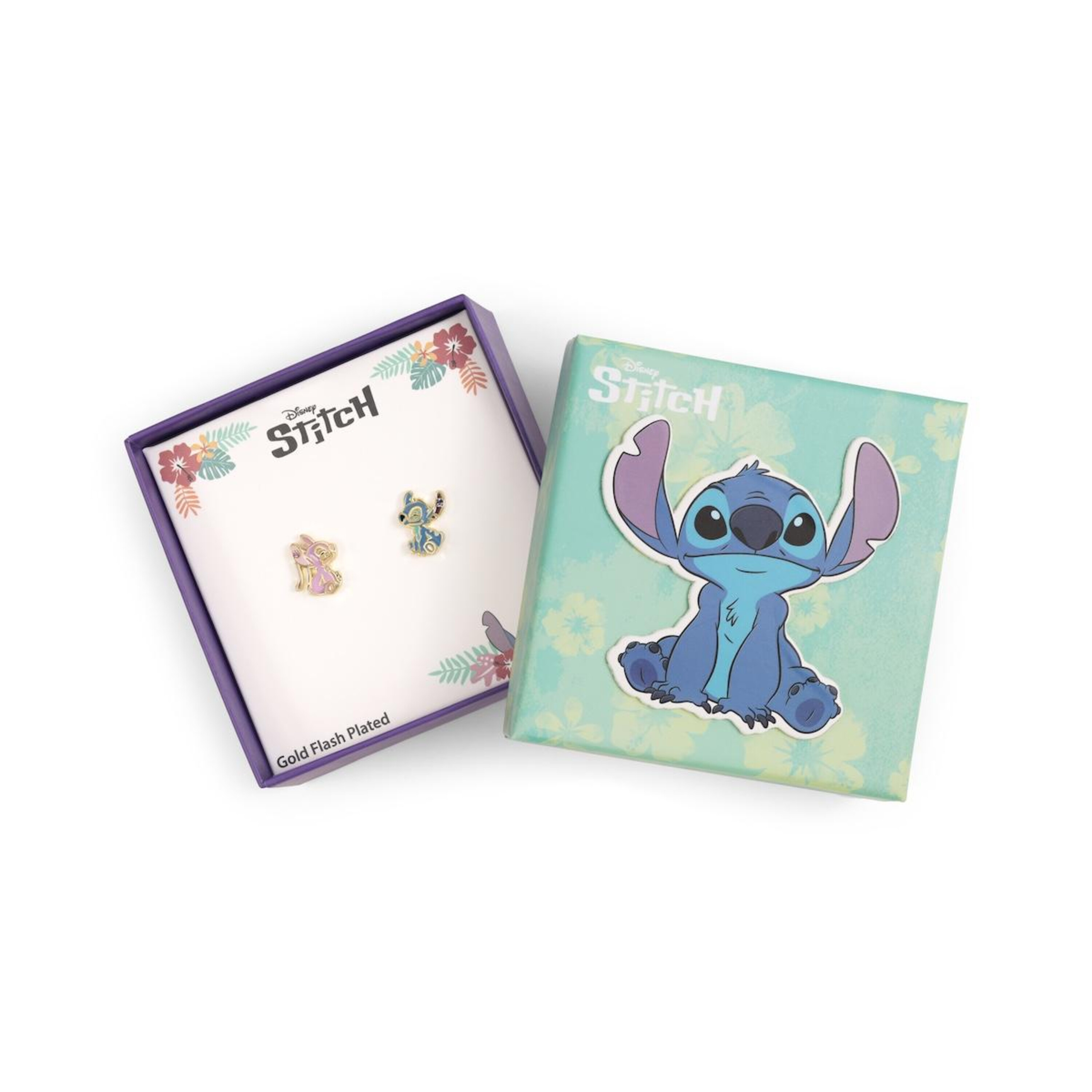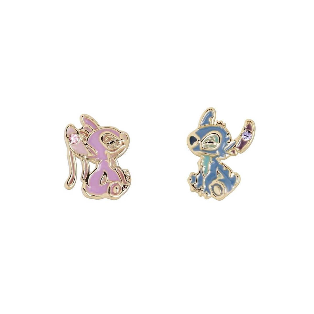 Los pendientes Stitch y Angel están bañados en oro y cada uno tiene una piedra de color brillante para crear el par icónico.