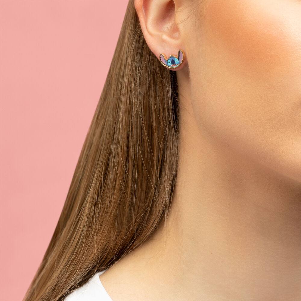 El pack de pendientes incluye un Stitch esmaltado, un pendiente floral y unos pendientes con piedras rosas.