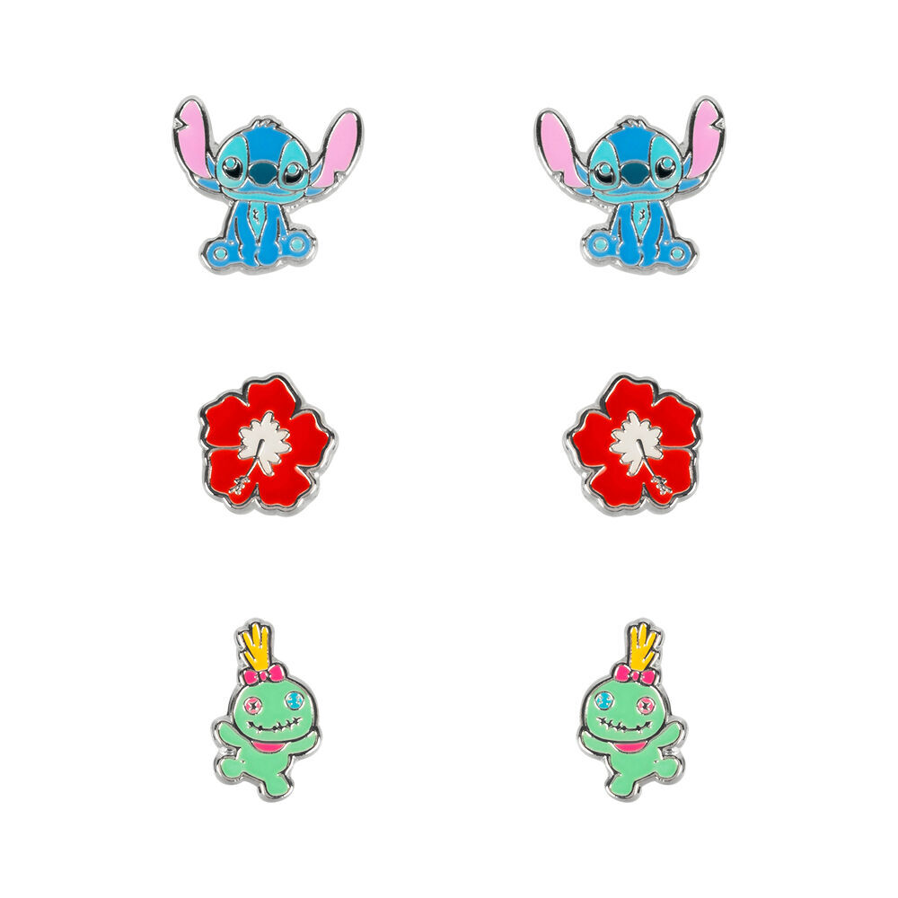 Set 3 Pares De Pendientes Plata Stitch - Disney