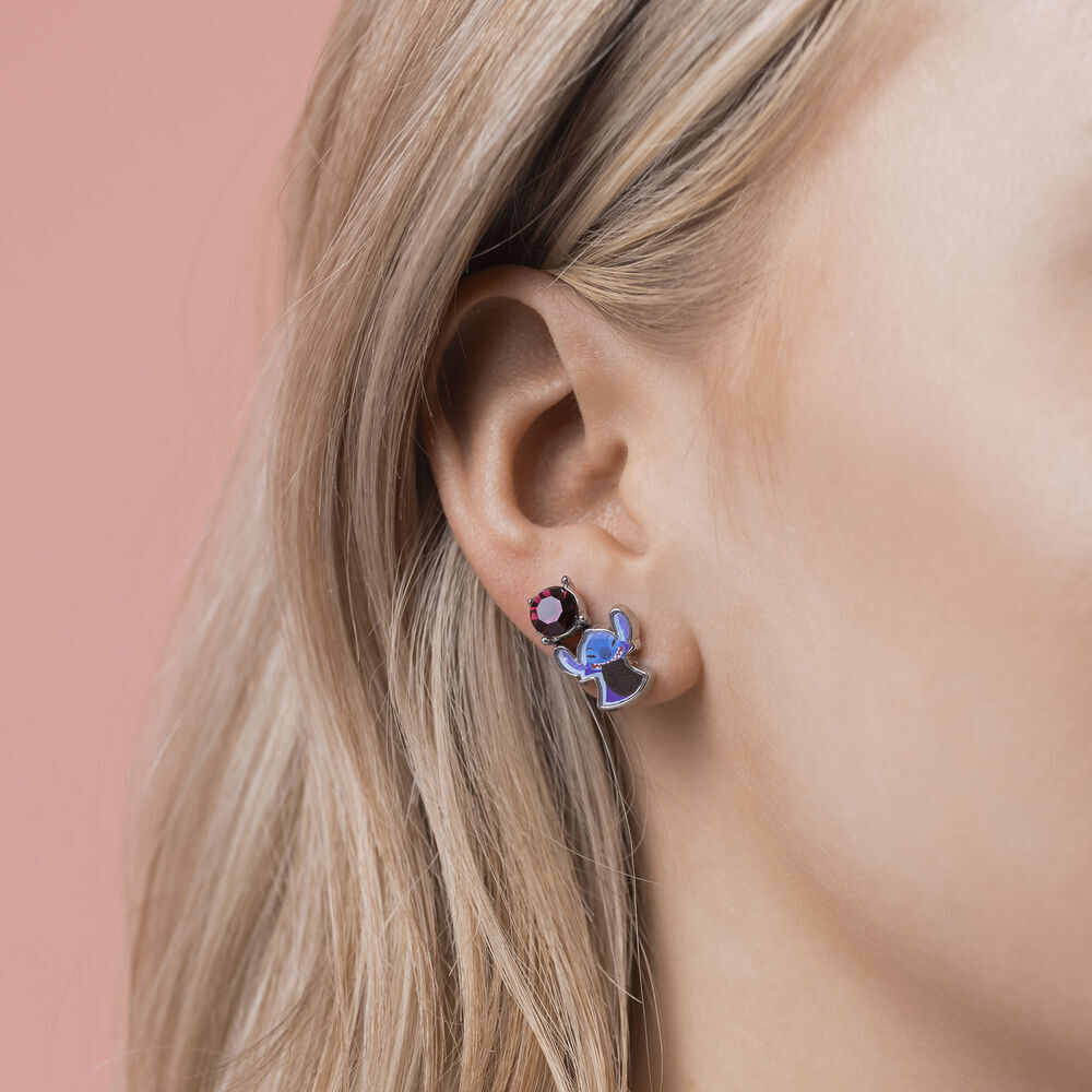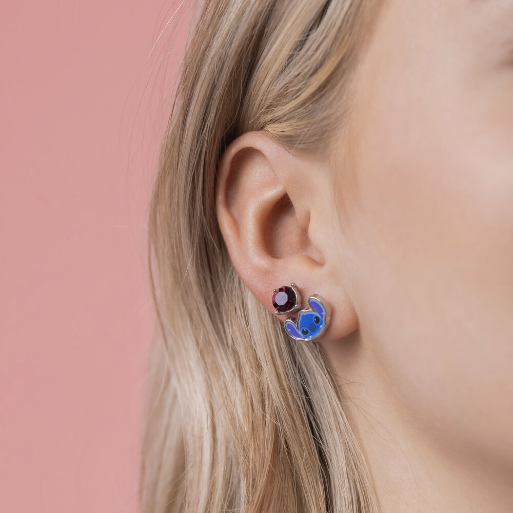 El set incluye 3 juegos de pendientes, un juego de piedras y dos pendientes azules con diseño Stitch .